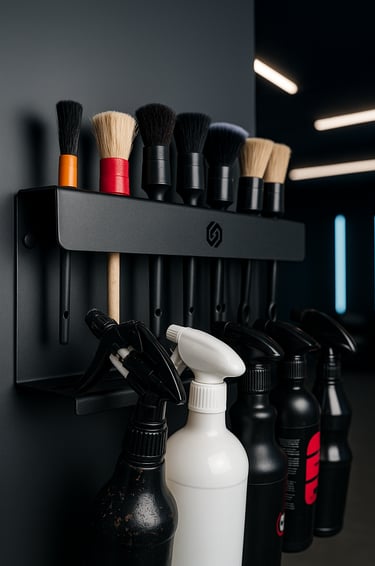 Zadbaj o perfekcyjną organizację swojego stanowiska detailingowego. Nasz uchwyt na pędzle i atomizery to niezastąpione rozwiązanie dla każdego pasjonata detailingu, który ceni estetykę i funkcjonalność. Dzięki solidnej konstrukcji wszystkie akcesoria masz zawsze pod ręką – w idealnym porządku i gotowe do użycia.